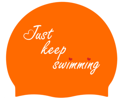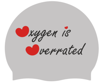 Available in three colors: Orange (text: Just Keep Swimming) Silver (text: Oxygen Is Overrated) White (text: Chlorine Is My Perfume)